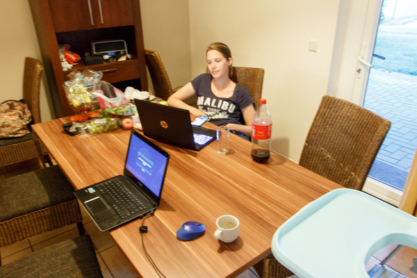 Deze dagen doen we niet zo veel. Boodschappen, trampoline en zondag naar het strand. We kijken nog de Formule1 en gaan zondagavond uit eten. Het uitgekozen restaurant was nog niet open, dus rijden we door naar de Franse grens en eten bij La Vieille Auberge. Het restaurant heeft een leuk speeltuintje, waardoor Gerben en Rianne relatief rustig kunnen eten. Zaterdag wordt TM gewonnen door Rianne, zondag door Gerben.